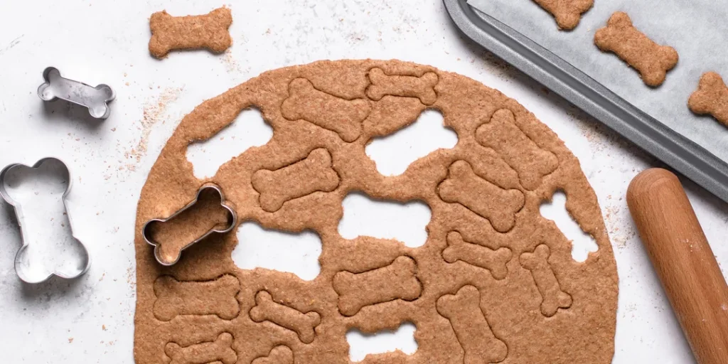 - Izrežite keksiće modlicom po želji – u obliku srca, kosti ili jednostavno izrežite kvadratiće nožem ili rezačem za pizzu.